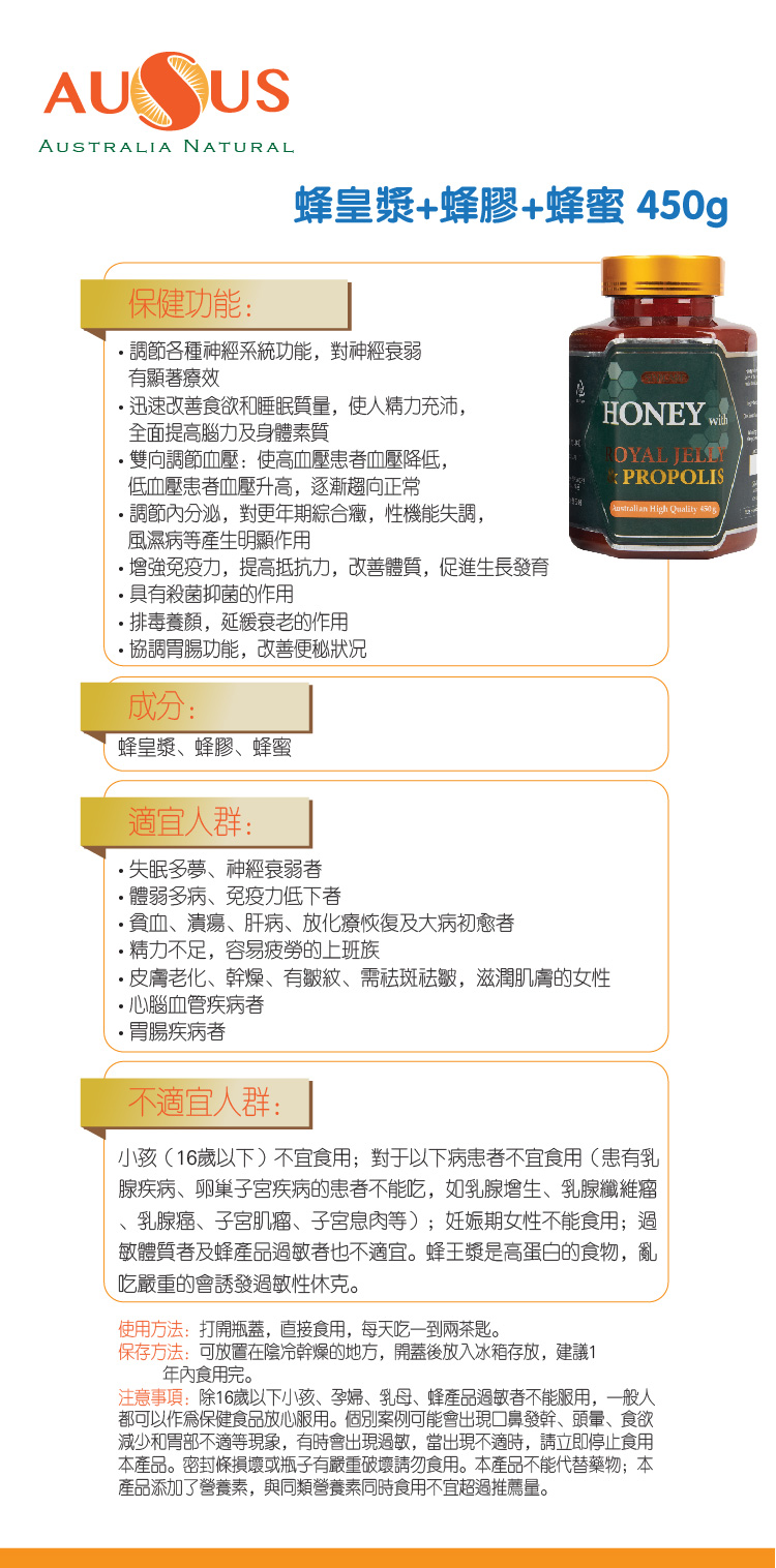 按以下按鈕新增 蜂皇漿+蜂膠+蜂蜜 450g 到喜愛產品列表